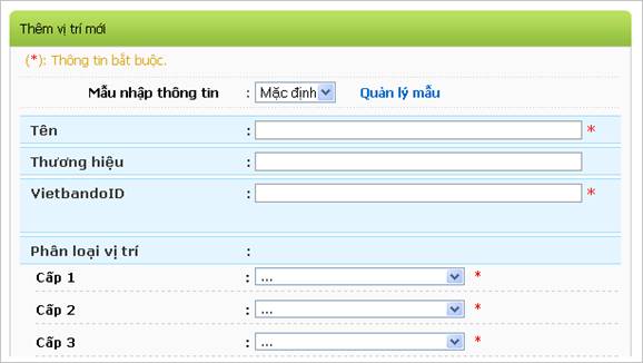hiệu, Vietbando ID, Phân loại vi trí(trong thuộc tính này thì có các