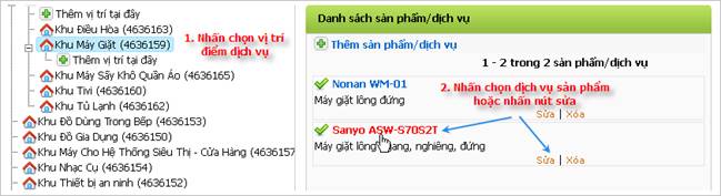 b. Chỉnh sửa vị trí cho điểm dịch vụ - sản phẩm